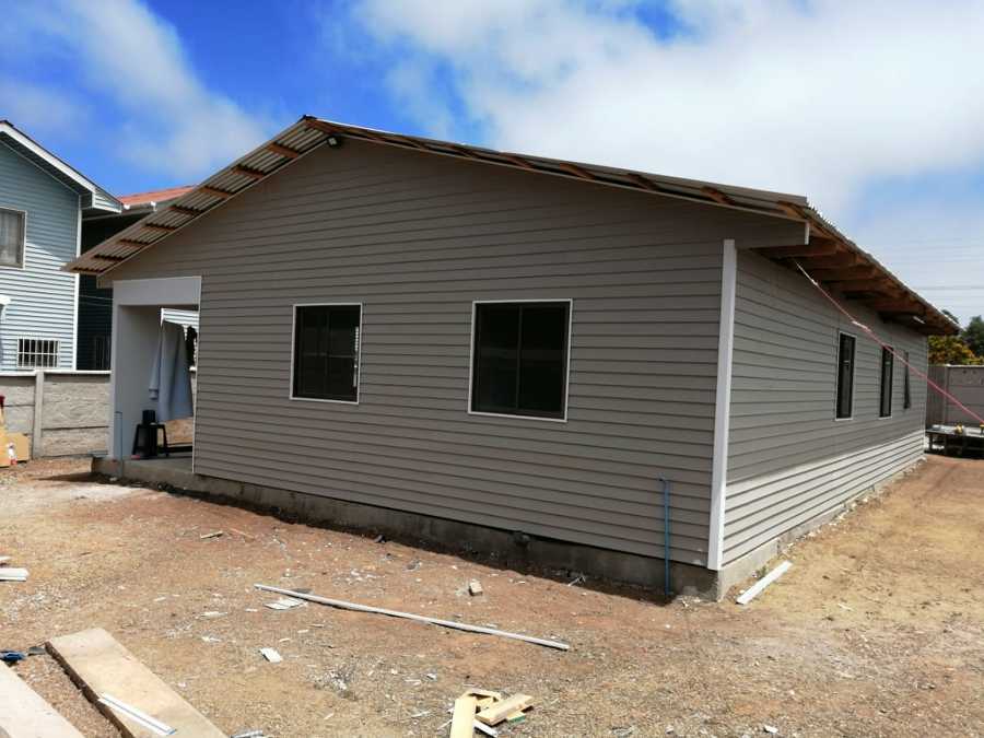 Construcción habitacional que consta de una casa y 2 cabañas unidas en su estructura, construida en base a paneles SIP, revestimiento exterior de siding-fibrocemento.