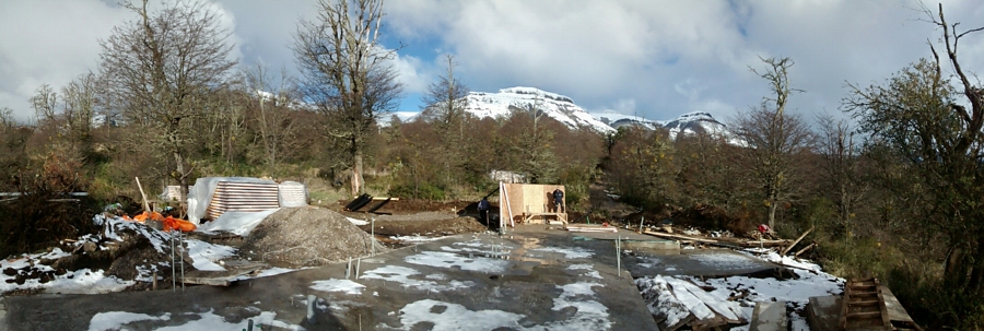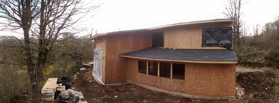 Este proyecto en ejecución se emplaza en un terreno de 5000m2, en medio del bosque, procurando mantener la vegetación nativa. Su aislación eficiente generará un ahorro sustancial en calefacción disminuyendo la emisión de gases contaminantes producto del uso de leña para calefacción, usando: