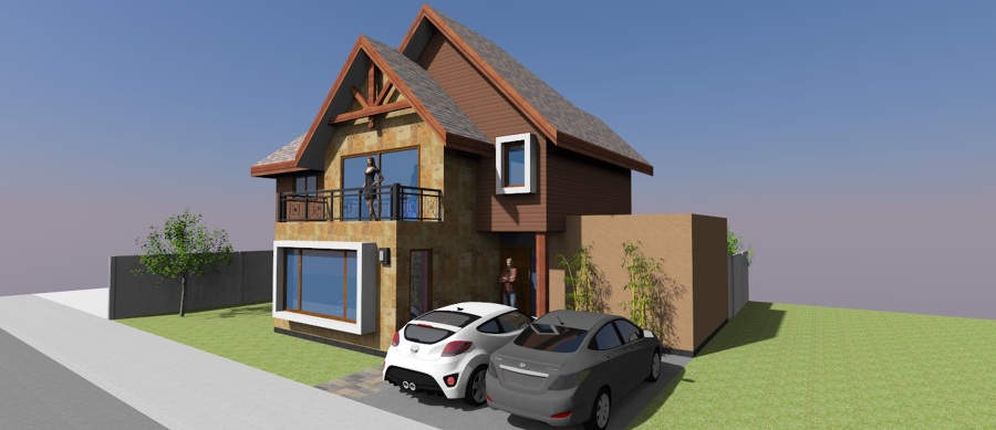 Dibujo 3D con materialidad de revestimientos, para tener una idea mas acabada de la casa terminada.