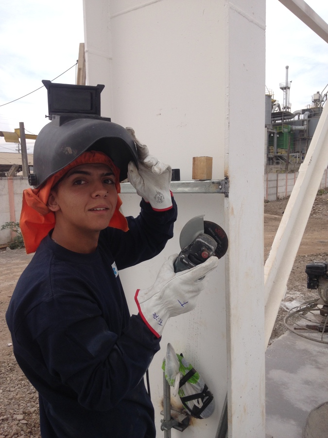 Instalación de lamparas de inducción magnética. Recubiertas para que la constructora pudiera aplicar pintura estructural. Estas lamparas fueron instaladas con flexible antiexplosion con sello.