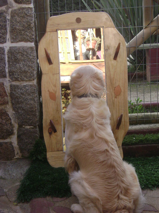 Espejo realizado con pino ciprés, cáñamo y vitrificado.