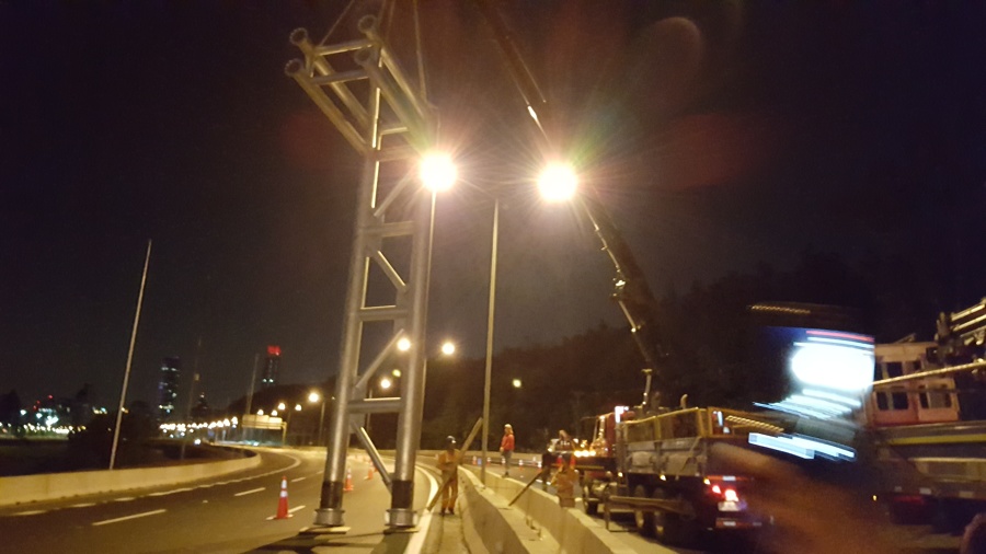 Diseño, fabricación y montaje de Pórtico porta-señalética, 18.7 Mt largo en cañería, en eje 251, Autopista Costanera Norte.